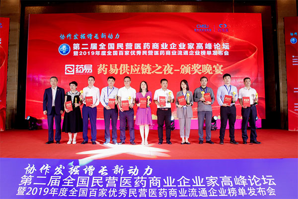2020年9月11日,由全國工商聯(lián)醫(yī)藥業(yè)商會醫(yī)藥商業(yè)分會主辦的第二屆全國民營醫(yī)藥商業(yè)企業(yè)家高峰論壇暨2019年度全國百家優(yōu)秀民營醫(yī)藥商業(yè)流通企業(yè)榜單發(fā)布會于成都舉辦,評選出了全國百家優(yōu)秀民營醫(yī)藥商業(yè)流通企業(yè)、十大年度人物、拓進人物等獎項,本次評選活動邀請了全國各省市的商協(xié)會、行業(yè)內(nèi)學者、企業(yè)家、支持單位嘉賓為民營醫(yī)藥企業(yè)發(fā)展助力。