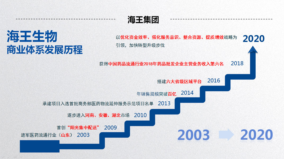 發(fā)展目標(biāo) ——《健康中國2030規(guī)劃綱要》已正式頒布,健康產(chǎn)業(yè)迎來重大戰(zhàn)略發(fā)展機(jī)遇。海王集團(tuán)將乘勢(shì)而為,專注醫(yī)藥健康產(chǎn)業(yè),堅(jiān)持技術(shù)創(chuàng)新和商業(yè)模式創(chuàng)新并重,深化創(chuàng)新,苦練內(nèi)功,力爭(zhēng)早日實(shí)現(xiàn)年銷售規(guī)模超過2000億發(fā)展目標(biāo),進(jìn)入世界500強(qiáng)。